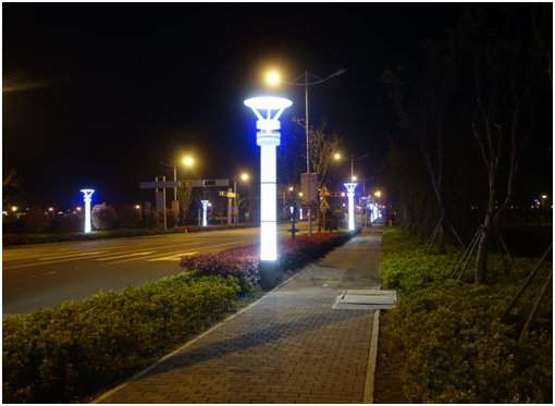 近日,通達大道夜景燈光又有了新“亮”點,安裝完成的景觀柱燈通電試運行。