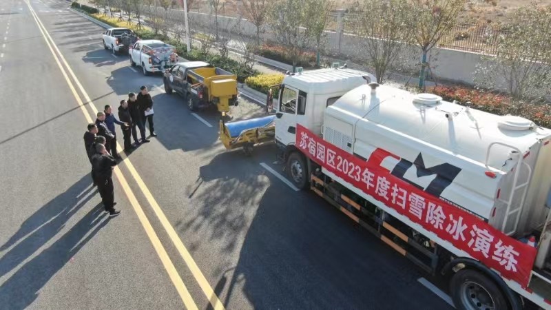 為切實做好今年冬季的掃雪除冰工作,提升應急處置能力,11月24日下午,建發(fā)公司組織開展除雪除冰應急演練。宿遷市交警二大隊副大隊長肖巖松、園區(qū)城維處處長孫建、建發(fā)公司副總經理倪松參加演練活動。