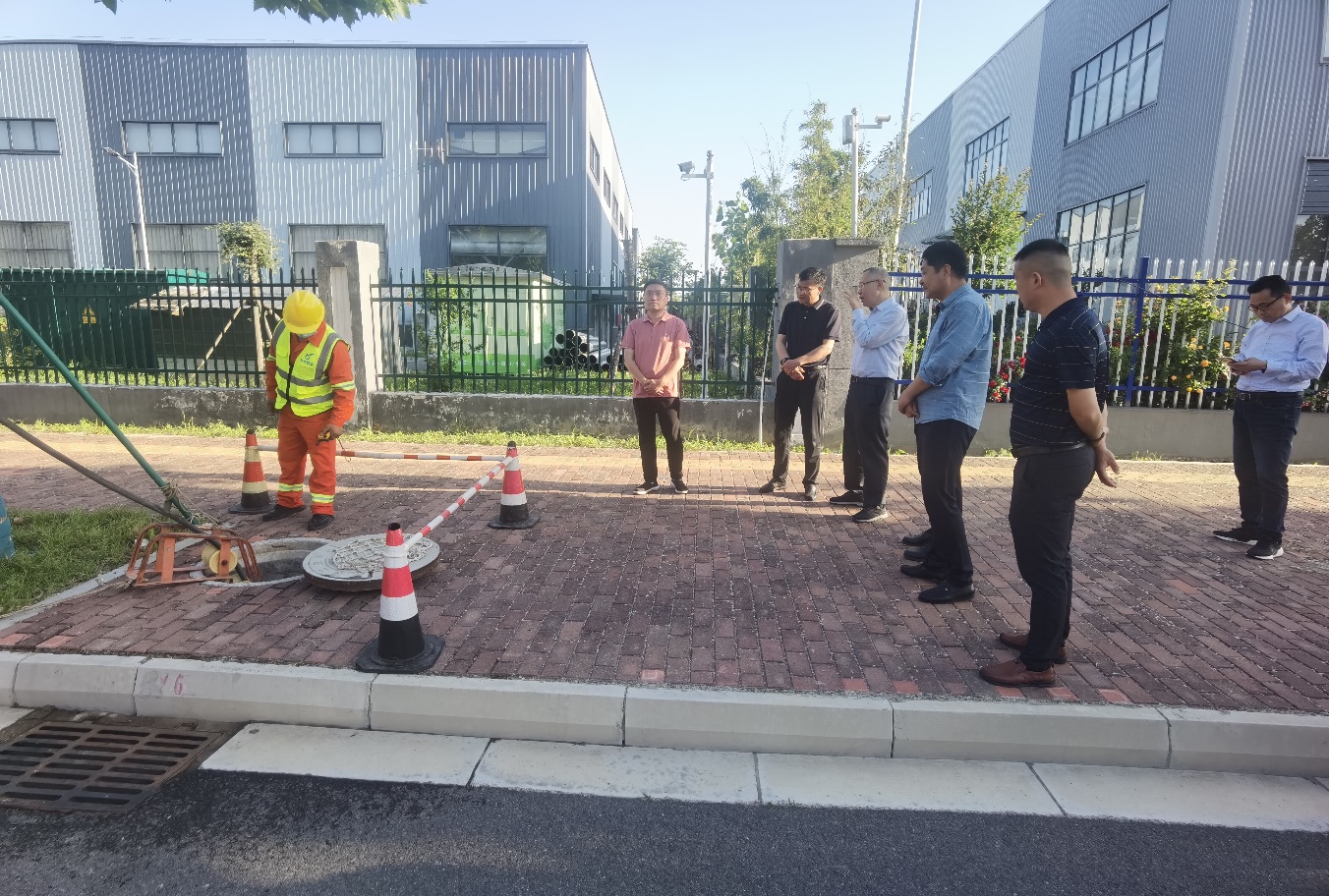 在鏡泊湖路疏通作業(yè)現(xiàn)場,檢查組認(rèn)真聽取了園區(qū)汛前排水防澇工作進(jìn)展情況匯報(bào),并詳細(xì)詢問了園區(qū)汛前管道疏通、檢測及維修相關(guān)情況。