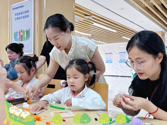 粘土DIY區(qū)同樣妙趣橫生。孩子們在工作人員的指導(dǎo)下發(fā)揮創(chuàng)意,用粘土捏出惟妙惟肖的彩色“粽子”,在實踐中感受文化魅力,收獲自信與成就感。