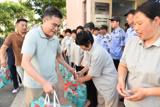 入伏以來(lái),宿遷持續(xù)高溫晴熱天氣,給堅(jiān)守一線(xiàn)崗位的勞動(dòng)者帶來(lái)不小挑戰(zhàn)。為有效落實(shí)防暑降溫措施,切實(shí)保障一線(xiàn)員工身體健康與作業(yè)安全,7月24日,建發(fā)公司組織開(kāi)展了一線(xiàn)員工高溫慰問(wèn)活動(dòng)。公司副總經(jīng)理倪松、相關(guān)部門(mén)負(fù)責(zé)人參加了慰問(wèn)。