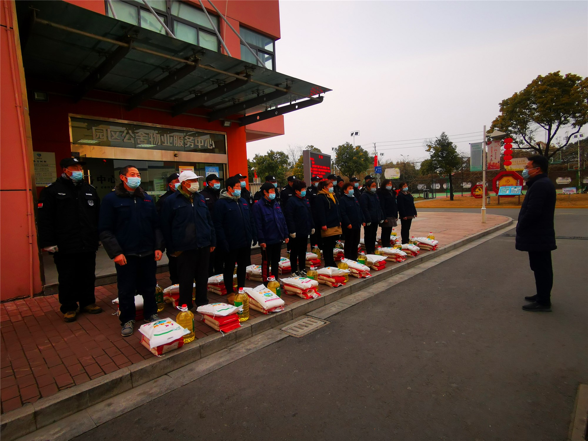 在新春佳節(jié)即將來臨之際,128日下午,公司副總經(jīng)理倪松慰問了奮戰(zhàn)在一線保潔及保安人員,為他們送上了米、面粉、油等慰問品。