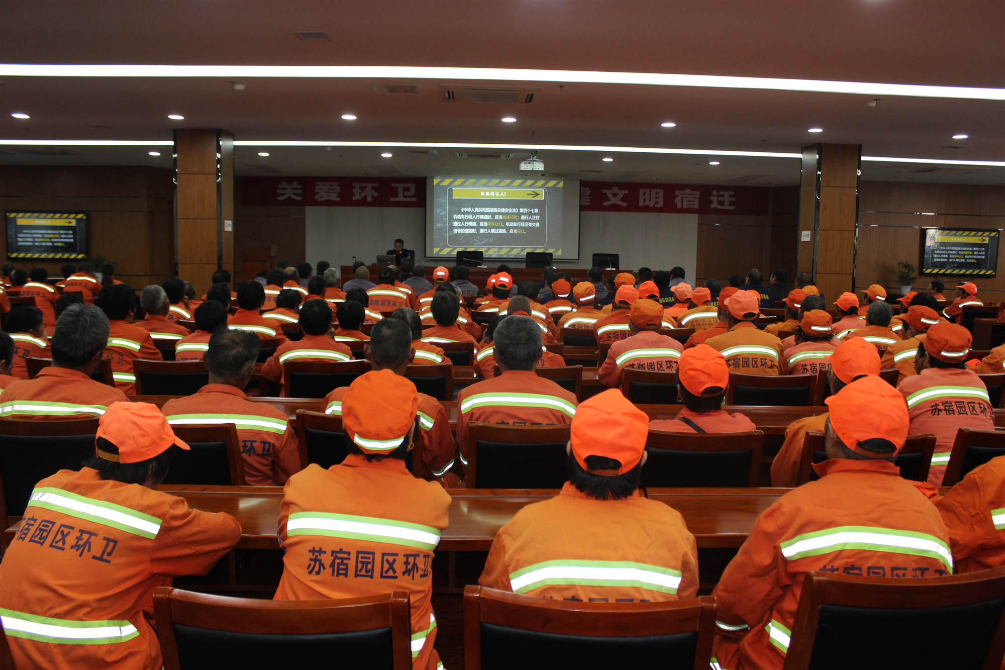 10月24日14時30分,園區(qū)邀請市交警大隊劉強警官為全體環(huán)衛(wèi)工人講了一堂專項交通安全知識講座,通過案例和理論相結合的授課,全面提高了環(huán)衛(wèi)工人的交通安全意識。安全專題講座后,還組織所有環(huán)衛(wèi)工人觀看了愛國題材電影《周恩來萬隆之行》,增強了環(huán)衛(wèi)職工民族自尊心和自豪感,培養(yǎng)了他們的愛國情懷,激發(fā)他們干好環(huán)衛(wèi)工作,為建設文明宿遷添磚加瓦。