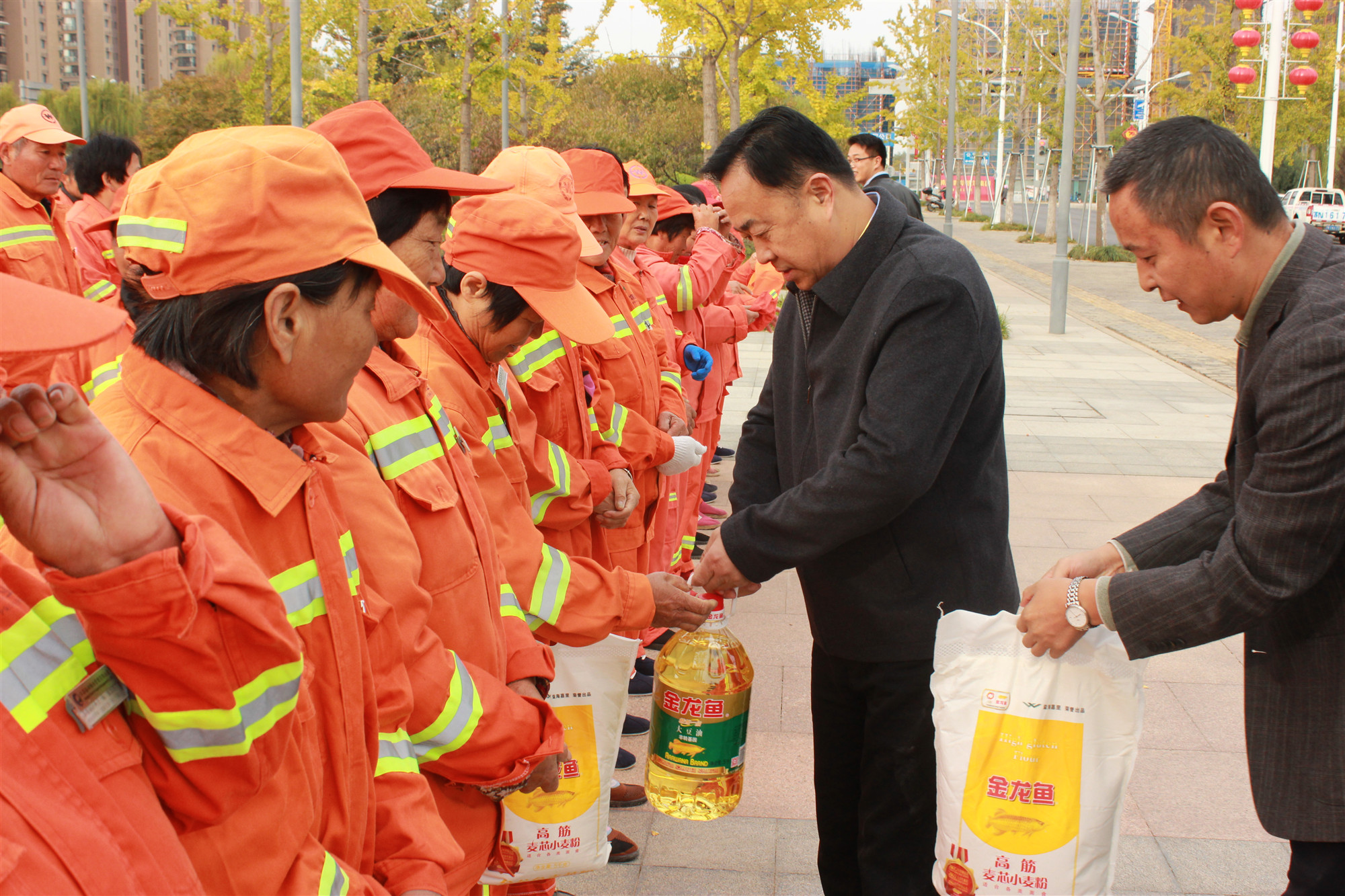 10月26日8時30分,園區(qū)黨工委委員、管委會副主任、規(guī)劃建設局局長邢全男帶隊,親切慰問了環(huán)衛(wèi)工人,并向她們送上了節(jié)日的慰問,感謝她們?yōu)閳@區(qū)環(huán)境衛(wèi)生作出了貢獻,并向她們發(fā)放了慰問品。