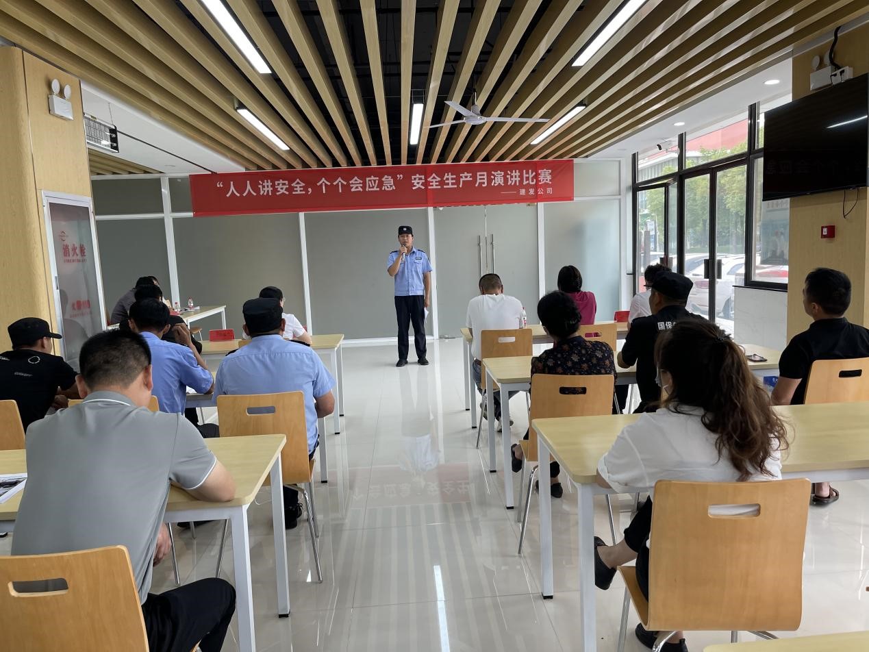 今年6月是第22個全國“安全生產(chǎn)月”,為進(jìn)一步推動安全文化建設(shè),提高廣大員工安全意識,營造安全和諧的生產(chǎn)環(huán)境和安全文化氛圍,6月16日,建發(fā)公司組織安保單位開展了“人人講安全,個個會應(yīng)急”主題演講比賽。