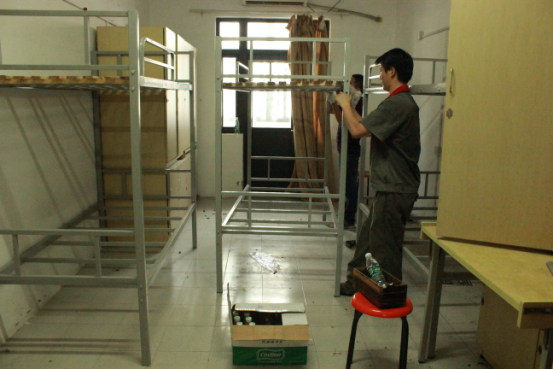 8月24日,處暑雖至,但天氣異常悶,光是站著不動就已經(jīng)大汗淋漓,而物業(yè)管理部的維修人員他們揮灑汗水,默默無聞地奮戰(zhàn)在一線,保障著園區(qū)公舍2號樓床鋪及時(shí)安裝完成。
