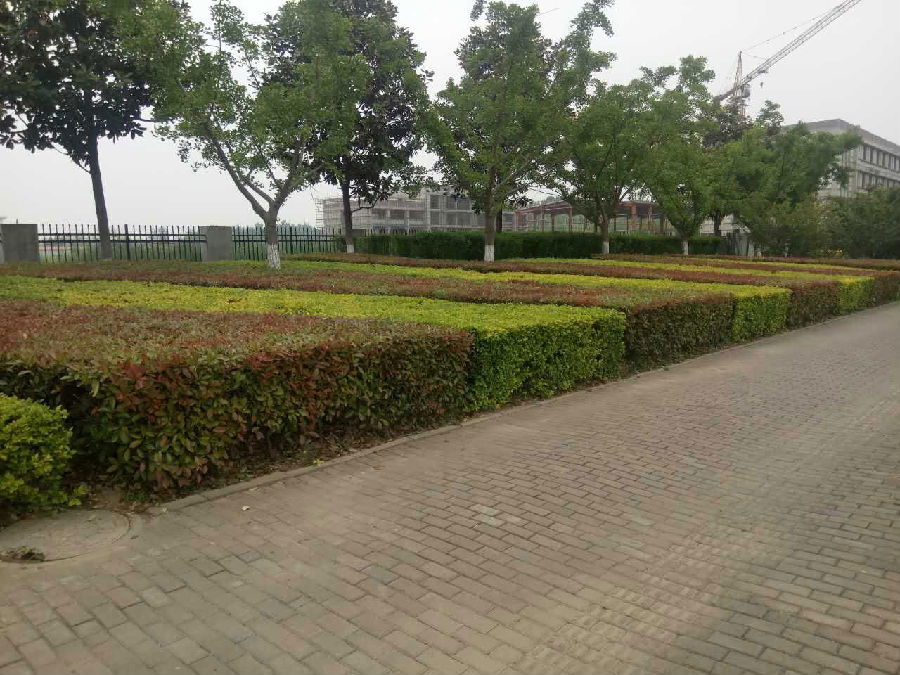 青海湖西路的綠籬占綠化總量較大,修剪質(zhì)量對(duì)整體景觀效果有較大的影響,為提升造型景觀,公司重點(diǎn)做好如下工作:一是崗前培訓(xùn)。在修剪作業(yè)之前對(duì)養(yǎng)護(hù)人員進(jìn)行了修剪技能培訓(xùn);二是精細(xì)化作業(yè)。在作業(yè)過程中全部帶線定高度修剪,同時(shí)根據(jù)不同的綠籬品種采取了方形修剪和面包型修剪,既防止修剪帶來的植株傷害,又提升了景觀效果。