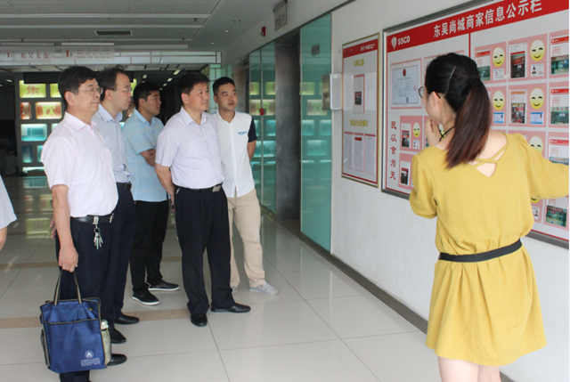 于堅(jiān)強(qiáng)一行先后參觀了東吳尚城美食城和園區(qū)公舍餐廳,聽取了園區(qū)小餐飲集中區(qū)建設(shè)背景和運(yùn)營(yíng)狀況的介紹,并先后觀看了園區(qū)運(yùn)用移動(dòng)終端、二維碼等技術(shù)手段推動(dòng)明廚亮灶、遠(yuǎn)程監(jiān)管、社會(huì)共治的現(xiàn)場(chǎng)演示??疾熘?,于處長(zhǎng)對(duì)園區(qū)積極創(chuàng)新監(jiān)管手段,推動(dòng)社會(huì)共治,將小餐飲管理出高標(biāo)準(zhǔn)給予了充分肯定,他要求建發(fā)公司要進(jìn)一步創(chuàng)新監(jiān)管思路,加大食品管理力度,確保食品衛(wèi)生安全零事故。