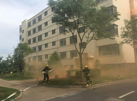 14:20分,園區(qū)公舍2號(hào)宿舍樓冒起滾滾濃煙,隨即刺耳的火災(zāi)警報(bào)聲響徹園區(qū),義務(wù)消防戰(zhàn)斗人員接到指示立即啟動(dòng)消防三輪車奔赴火災(zāi)現(xiàn)場(chǎng)。不到一分鐘時(shí)間,一至六層的租戶在疏散人員的帶領(lǐng)下掩住口鼻,彎著腰,有序地從宿舍的消防安全通道逃生。隨即,消防戰(zhàn)斗人員按照指示迅速開(kāi)啟消防水泵對(duì)“起火”后的宿舍樓進(jìn)行快速滅火,救護(hù)人員隨即趕到現(xiàn)場(chǎng)參加救護(hù),演練持續(xù)近五分鐘后圓滿完成。