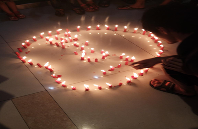 明亮的燭火之中,他捧著鮮花說愛你,然后輕輕擁你入懷……7月13日晚,東吳尚城門前,男主角站在心形的燭火之中等待她的出現,周圍圍滿了前來看熱鬧的員工。