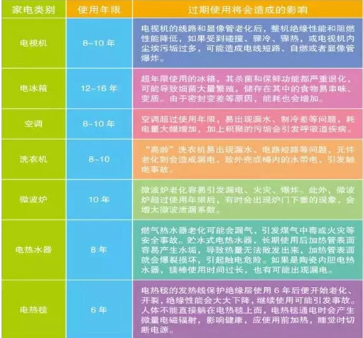 我們平時(shí)在購(gòu)買食物時(shí)都會(huì)特別注意查看食品的保質(zhì)期,但是您知道家用電器也有“保質(zhì)期”嗎?家用電器都有安全使用年限,在使用時(shí)一定要留意。
